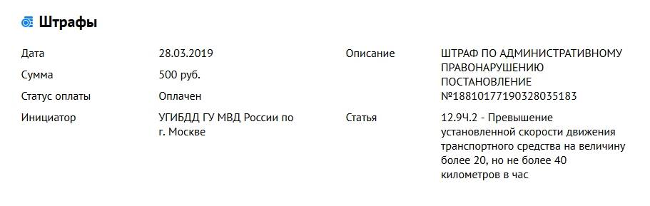 — Последний штраф на Камри был получен 28 марта 2019 года за превышение скорости.