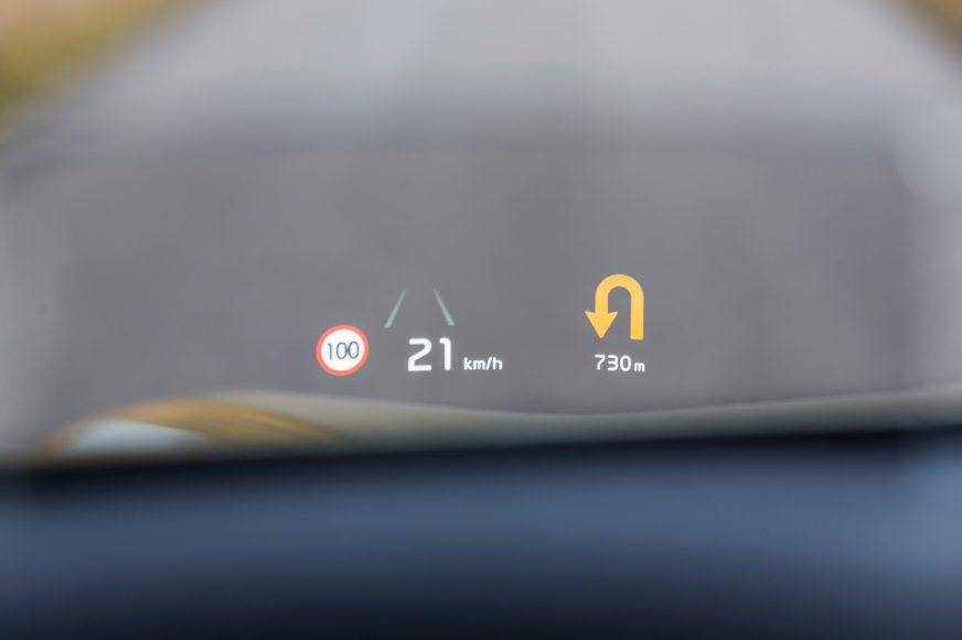 Проекционный дисплей показывает разрешённую и фактическую скорость, а также подсказки от навигационной системы. Он находится аккурат на уровне глаз и позволяет почти не смотреть на приборную панель