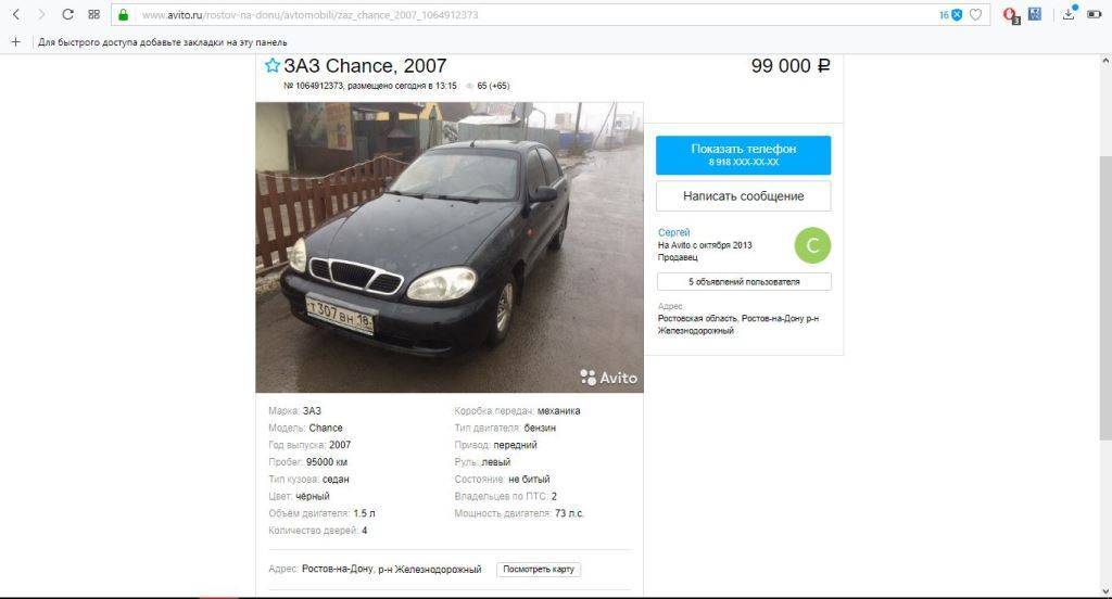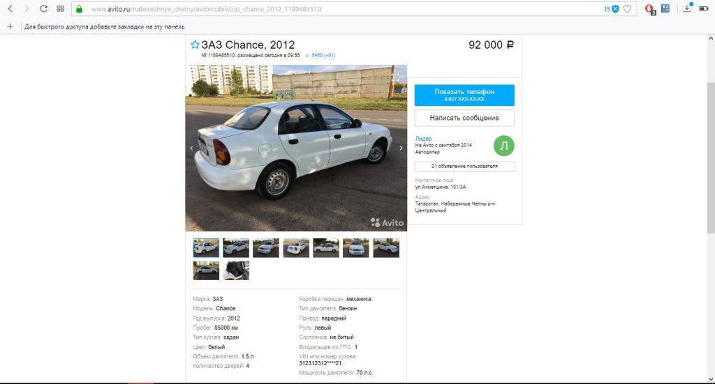 Итак, первым моим автомобилем стал «Zaz Chance 1.5.» С момента покупки я откатал на нем более полугода (11 тыс.км) и он ни разу меня не подвел. За него могу поручиться, и именно их мы сейчас посмторим на авито. Смотреть будем по всей России, но и в регионах их продается достаточно много.