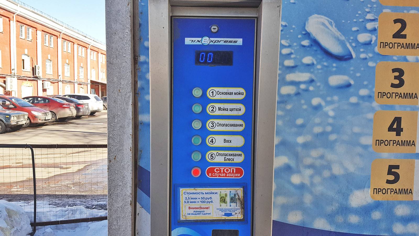 Оплата и выбор необходимых операций. В автомат пропускают купюры, чтобы оплатить выбранный набор услуг. В зависимости от желания пользователя, можно выбрать такие услуги: вода, пена, воск, воздух. После того как человек зашёл в бокс и вытянул пистолет, начинает работать таймер. Происходит это на протяжении времени, за которое было заплачено.