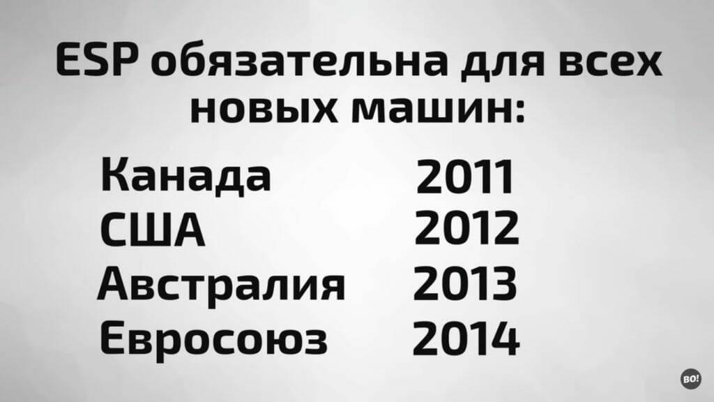 В Европе уже с 2014 года все выпускающиеся автомобили уже имеют в базовой комплектации ESP. У нас же, в России, это пока не обязательное условие.