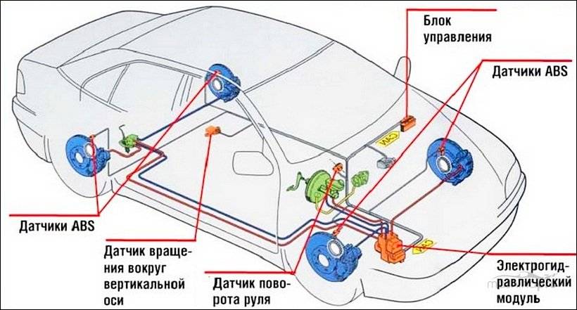 заносе. В ее работе учувствует множество датчиков и сложный блок управления. В