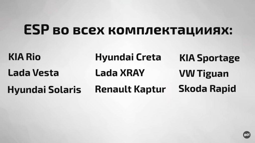 Такой закон есть только для системы ABS, которая помогает тормозить. С 2016 года все новые машины в РФ обязаны иметь ABS во всех комплектациях, а наличие ESP зависит от производителя. Вот топ 15 самых продаваемых моделей в России. В 9 из них все машины оборудованы ESP во всех комплектациях. То есть всё-таки большинство новых машин в России продается с ESP, но есть отстающие марки.