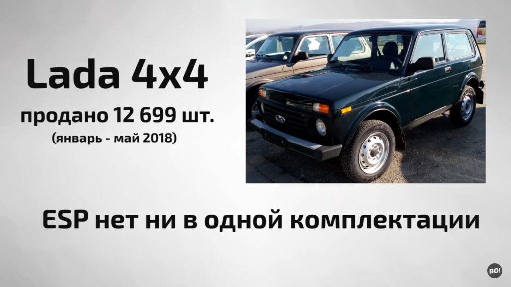 Под этим названием скрывается советская Нива, которую продают уже 40 лет без существенных изменений конструкции. Неудивительно, что на ней нет ESP. Также ESP нет совсем на Lada Largus, а на Lada Granta есть только в самой дорогой комплектации. В защиту АвтоВАЗа можно сказать, что без ESP продаются только уставшие модели. Новые Lada Vesta и Lada XRAY полностью оборудуются этой системой. Из иномарок отстает Volkswagen Polo, у него ESP только в самой дорогой комплектации. А у бюджетных Renault ESP не идет сразу, но ее можно установить за дополнительную плату.