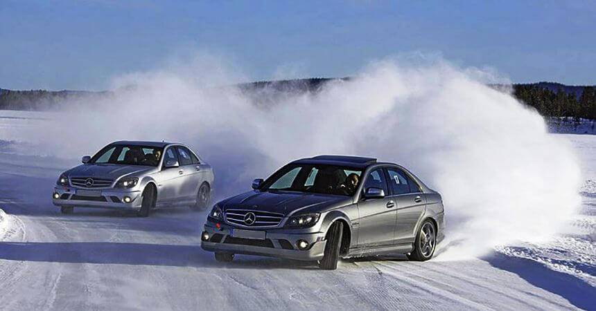 нужно пустить колеса в занос. Это можно сделать на снегу или мокром асфальте,