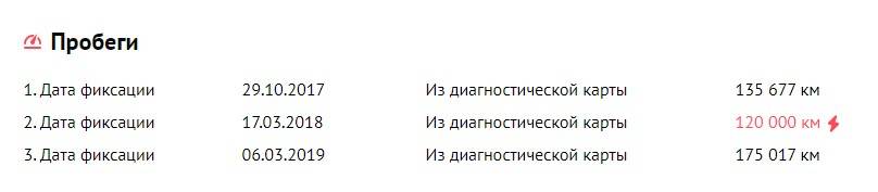 Данные о пробеге не совпадают и, как показывает отчет, показания подвергались корректировке. В 2017 году аналитический пробег составлял более 135 тыс. км, в 2018 году — уже 120 тыс. км:
