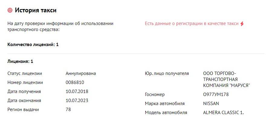 На данный момент лицензия аннулирована, но продавец и словом не обмолвился о таксистском прошлом автомобиля.