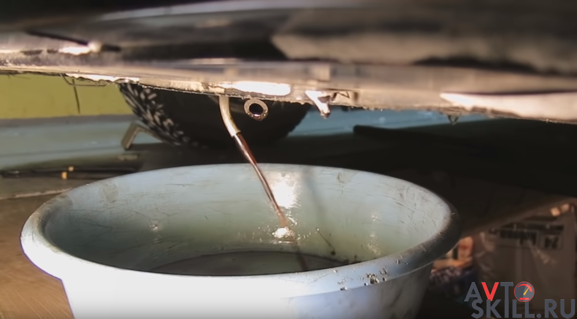 Слив масло через патрубок, идущий к радиатору охлаждения