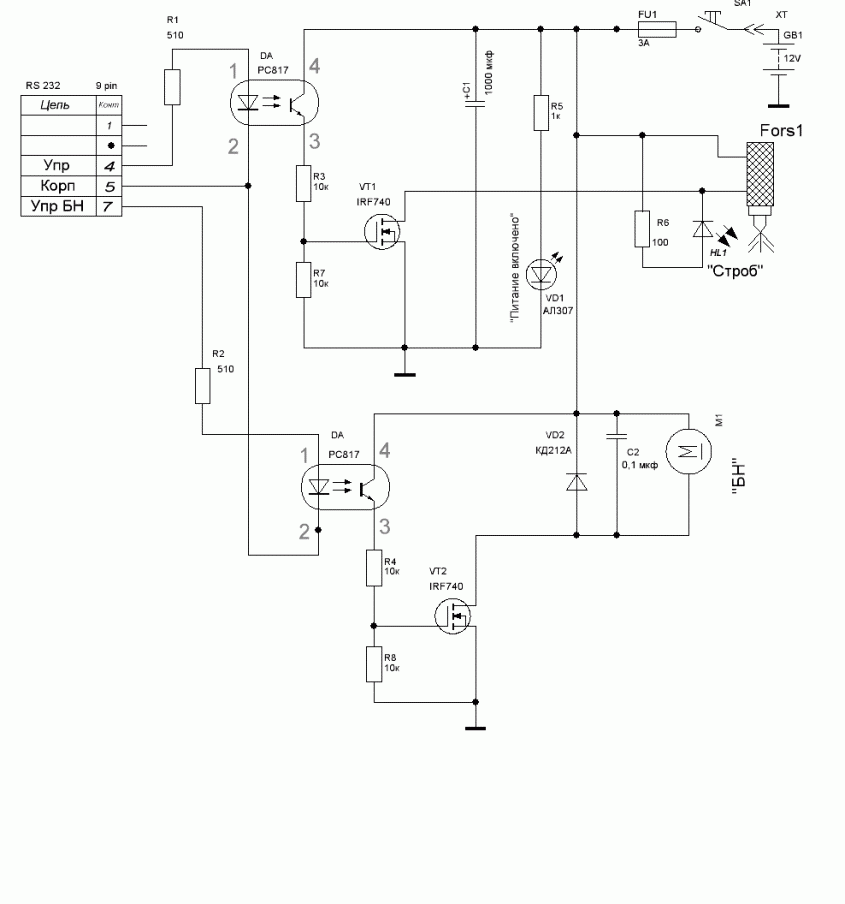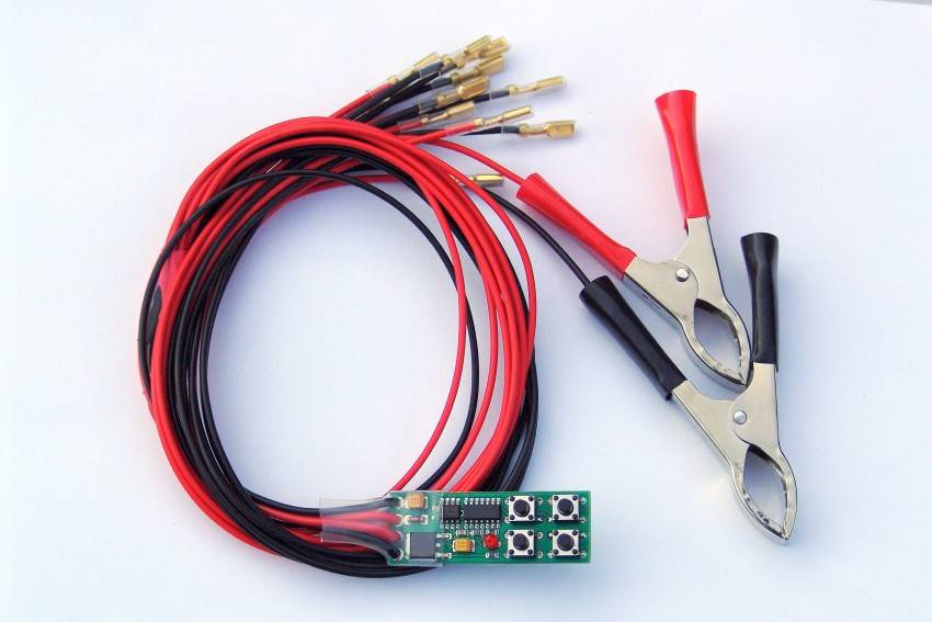 - с помощью аккумулятора, а также двух проводов, подводится электропитание;