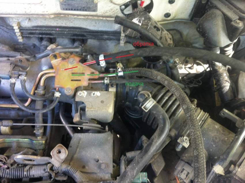 - Отсоединяем топливопроводы (подающий и «обратку»);