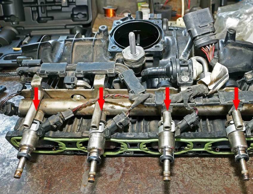 Для более качественного очищения, форсунки потребуется изъять из топливной системы. Это выполняется следующим образом: