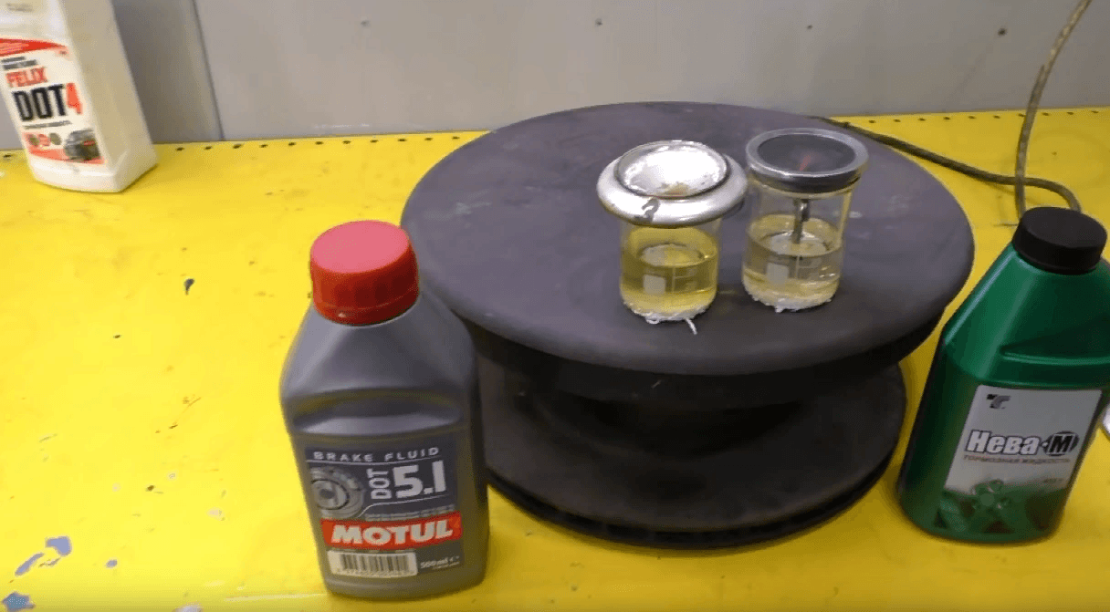 И финальный тест — Нева DOT-3 и Motul DOT 5.1. Посмотрим, кто кого. По идее, DOT-3 должен закипать на 180 градусах, а Dot 5.1 — где-то на 270.