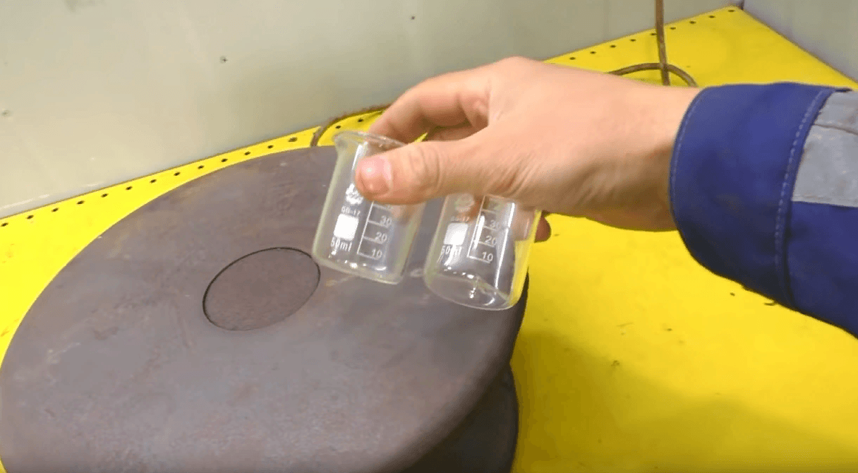 В жидкости появились какие-то искажения. Это говорит о том, что они налиты не из одной бочки. Попробуем их еще немного нагреть и посмотрим, что будет.