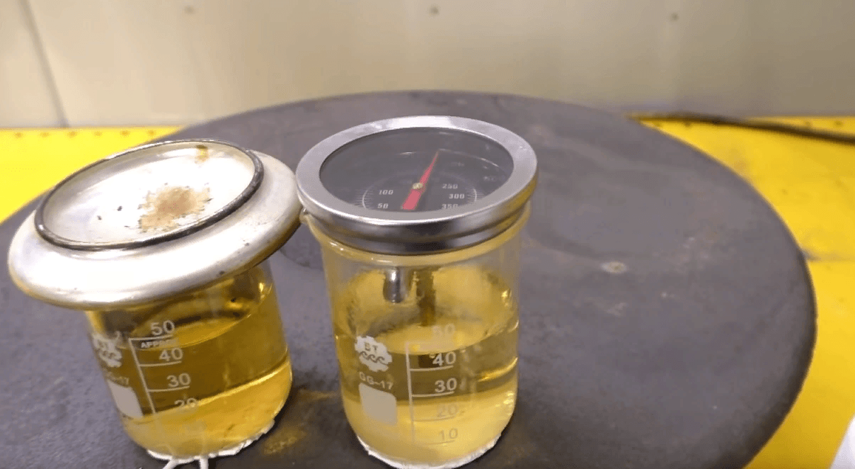 Следующее испытуемое масло у нас Castrol и AWM. Температура уже больше 200 градусов, а жидкости ещё и не думают кипеть. Это очень радует.