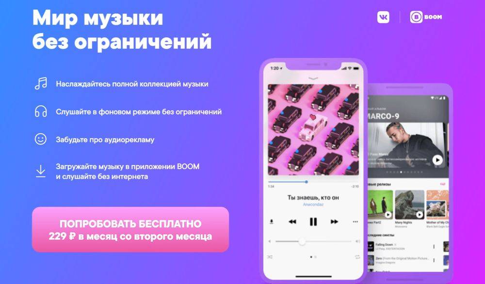 Социальная сеть предложила оформить на прослушивание музыки всего за 1 рубль на 3 месяца. Треки будут доступны без рекламы, в офлайн-приложении Boom и в фоновом режиме в самих соцсетях.