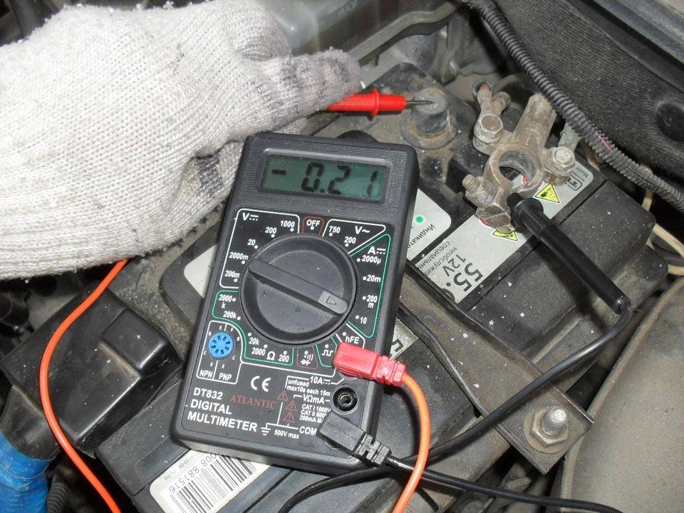 - Измерение напряжения на клеммах выполняется вольтметром: нормальная величина 12,5―12,9 В без подключения нагрузки, и не меньше 11 вольт при её подсоединении. Недостаточный размер показателя свидетельствует о разряженном состоянии АКБ и необходимости восстановления потенциала до установки на автомобиль.