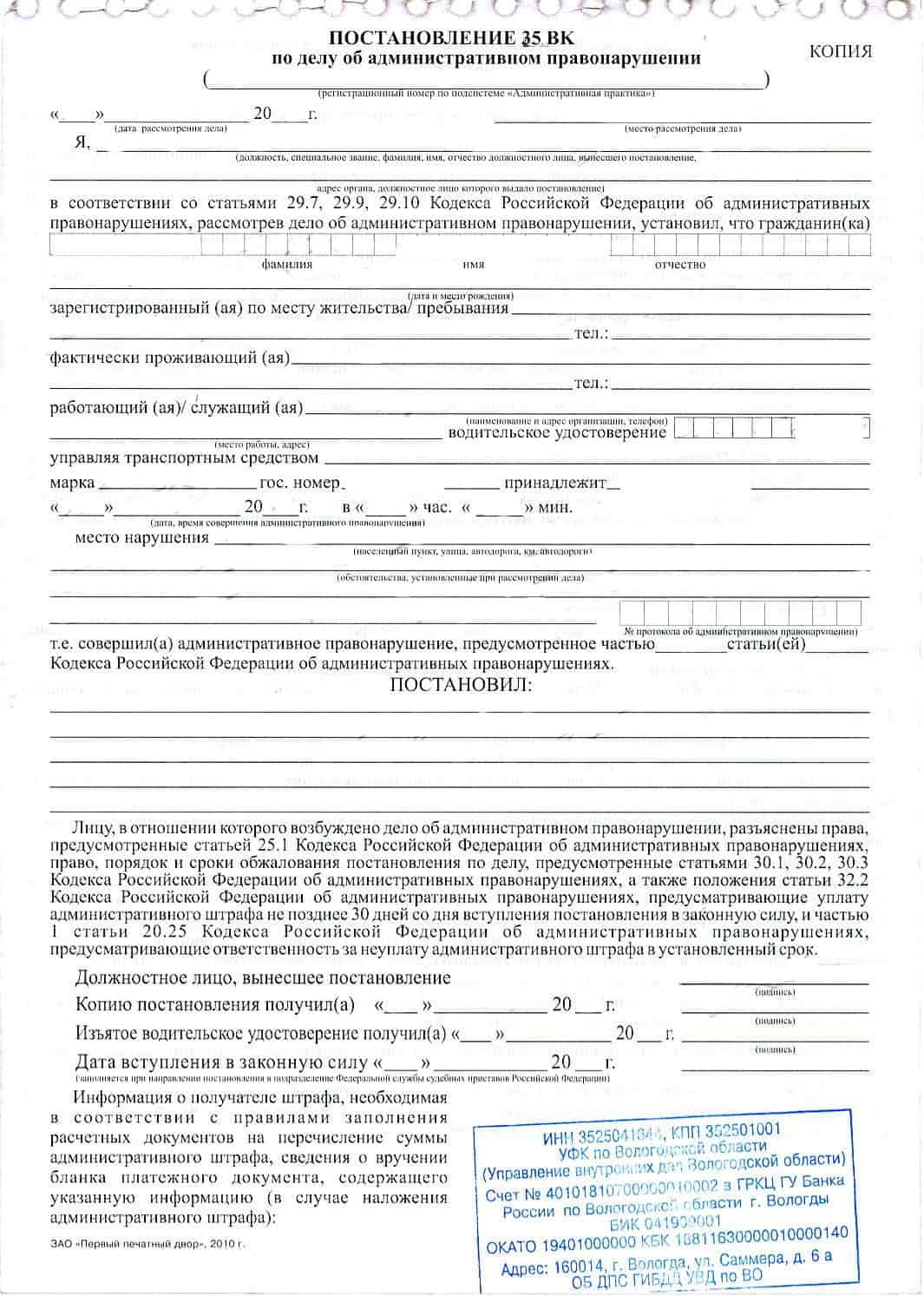Образец протокола и образец постановления
