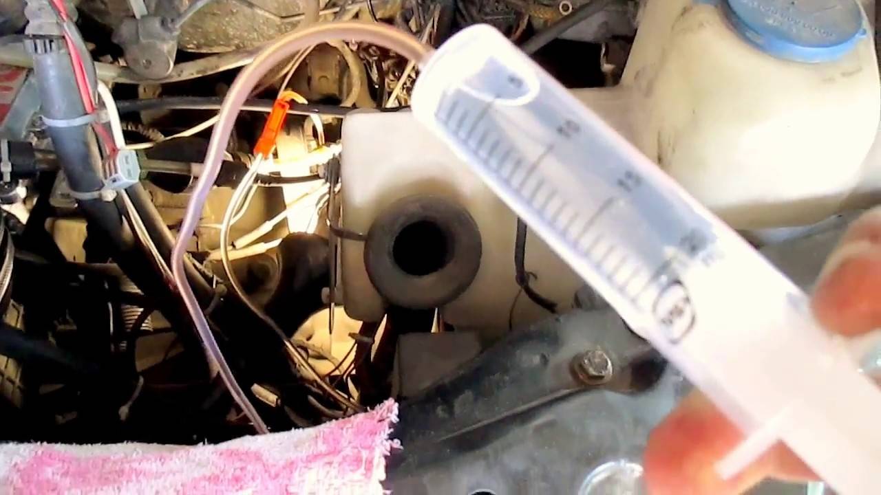 При прокачке контролируем уровень жидкости в бачке и при необходимости доливаем жидкость.