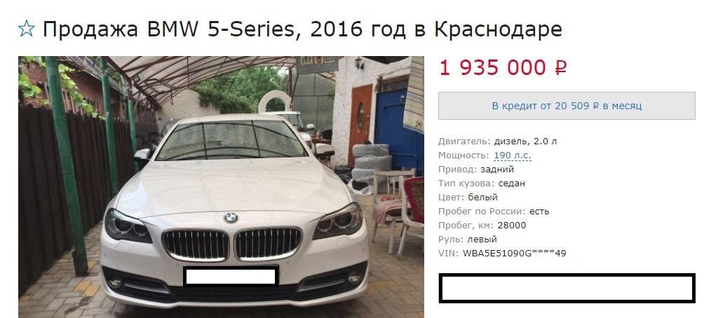 Однако далеко не все машины в возрасте от одного до трех лет оказываются «чистыми», как этот «БМВ» 16-го года, отдающийся почти под 2 млн рублей: