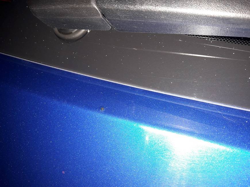 Последний раз обезжирил и начал наносить краску тонкими слоями ( чтоб краска не стекала), сушил слой феном. Капли краски должны уходить в площадь, а то ли из-за низкой температуры воздуха, то ли холодных баллончиков в первый день все потекло. Так же перед новым слоем краски я обезжиривал как следует. Было нанесено 5 слоев краски … многовато … еще хотел скрыть переход краски на родной цвет.