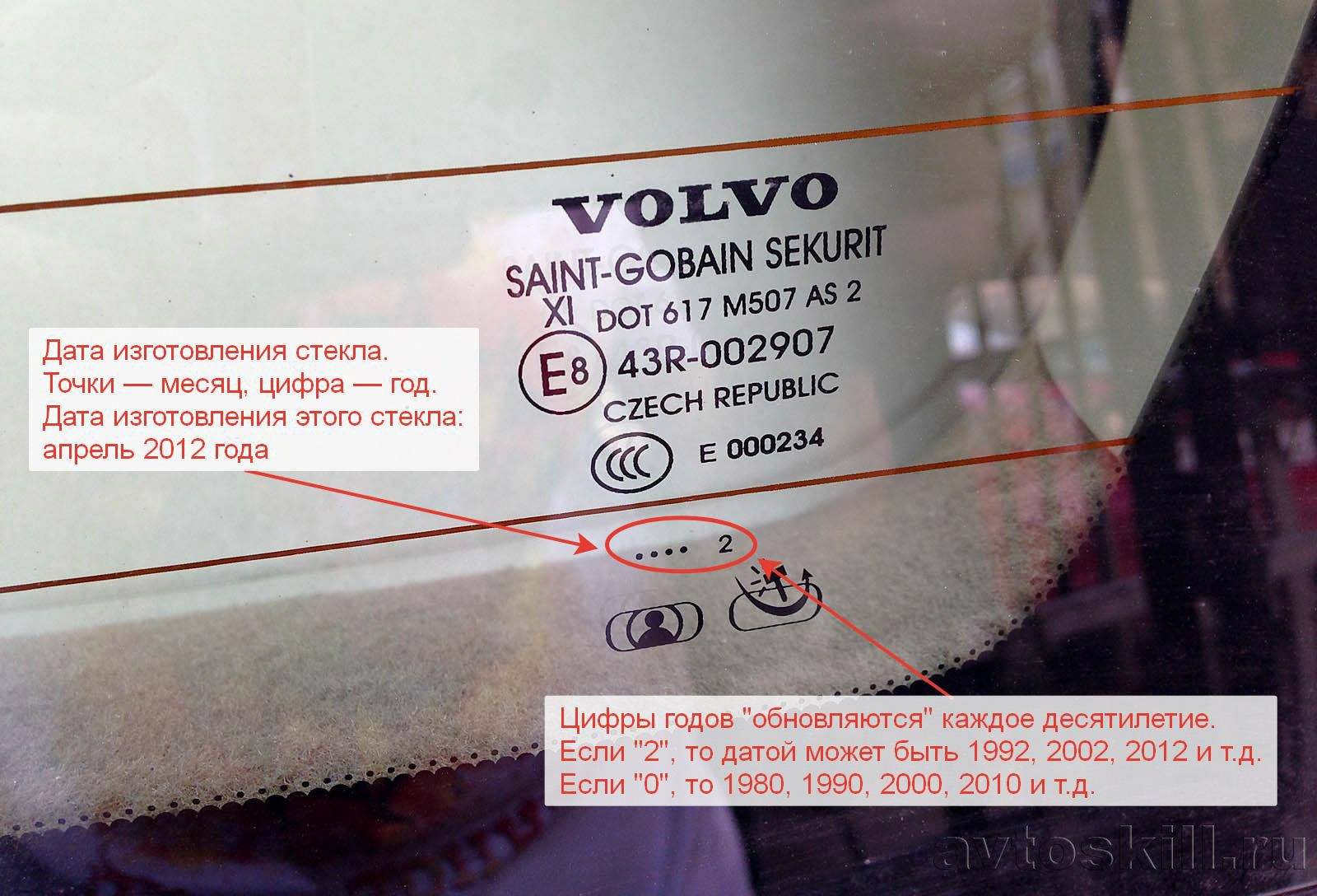 Лобовое стекло не имеет ни сколов, ни царапин до 20 тысяч. Если обнаружено много таких мелких повреждений, то машина прошла более 50 тысяч. Со временем (80-100 тысяч пробега) стекло также начинает мутнеть. Надо учитывать, что лобовое стекло, также, как и боковое, могут заменить. Это можно проверить по маркировкам на стеклах. На них можно найти дату выпуска, однако у разных производителей она обозначается по-разному (цифрами, точками, вперемешку и т.д.).