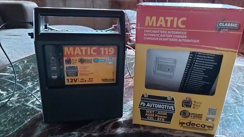 Лучший представитель трансформаторных ЗУ в нашем рейтинге от известного итальянского бренда поддерживает зарядку только свинцово-кислотных источников питания, но обширного диапазона ёмкостей (10-130 А*ч). ТЗ приличный, но нерегулируемый (9 А). Вес аппарата 2,5 кг, для трансформаторных аппаратов это приемлемо. Режим зарядки – автоматический, реализовано 4 степени защиты. О состоянии процесса сигнализируют светодиодные индикаторы. Стоимость Deca Matic 119 – порядка 2,5 тысяч рублей.