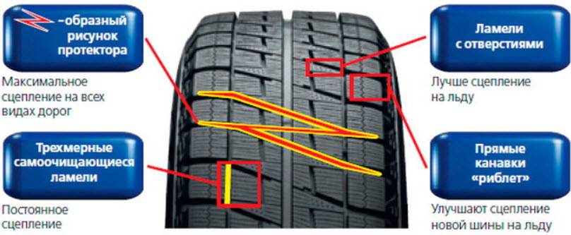 Отличие шин по сезонному признаку можно обнаружить и в некоторых конструктивных особенностях протектора, в частности, в так называемых ламелях.