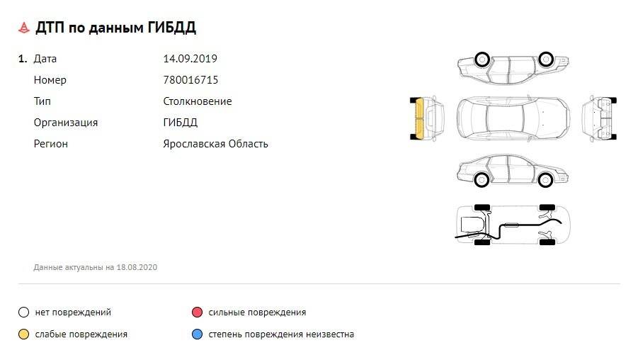 В отчете avtocod.ru отобразилось одно ДТП: