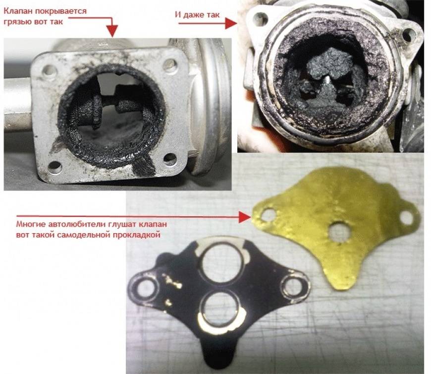 Пропускное сечение во впуске забивается отложениями, дизельный двигатель постепенно теряет мощность. Забитый клапан ЕГР приводит к появлению ошибок, автомобиль может неожиданно перейти в аварийный режим. Вполне очевидно, что в подобной ситуации необходим срочный ремонт системы рециркуляции отработавших газов или же ее отключение путем глушения клапана егр.