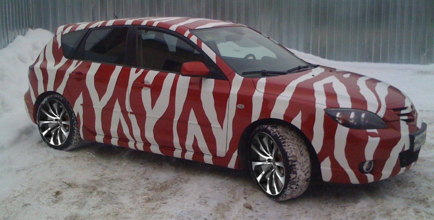 Стремление к оригинальности может привести не только к поиску необычного цвета, но и рисунка. Например, можно ли перекрасить авто узором под пчелу, божью коровку, зебру? Хозяин – барин, но возможны проблемы с регистрацией такого авто в ГИБДД.