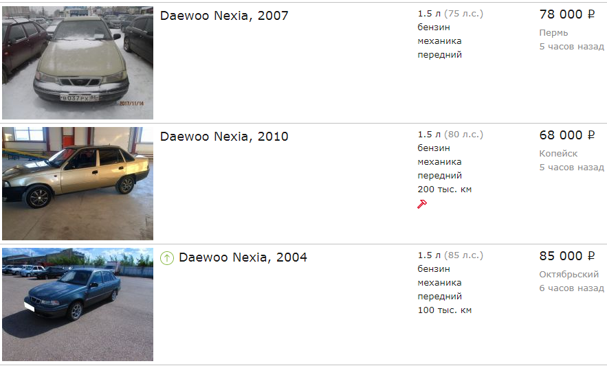 Машина очень популярна на рынке и пользуется спросом у покупателей. За такую небольшую сумму можно найти Daewoo Nexia в идеальном состоянии, и она действительно прослужит вам долгие годы. Представлены варианты с двигателем в 1,5 литра и мощностью в 75 л. с. Отличное решение для повседневного использования, но ожидать больших скоростей от неё не стоит.