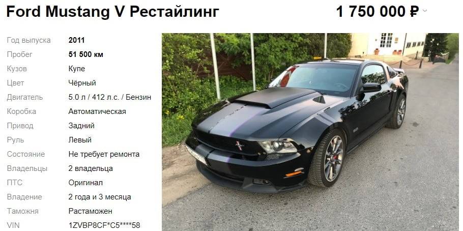 Награбленного за долгие годы добра Кхалу, безусловно, хватит для покупки модели. На вторичке за «Мустанг» просят около двух миллионов рублей.