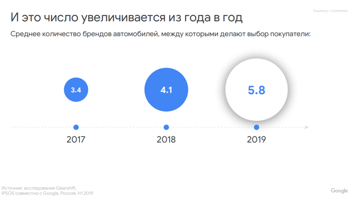 А в 2019 году перед покупкой пользователи обычно рассматривали около шести брендов, отмечает Google.