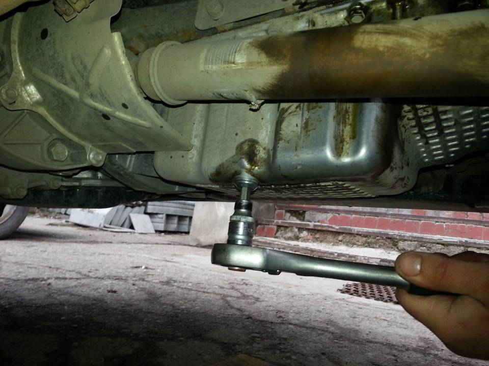 Итак, прежде чем приступать к выполнению этой работы, необходимо загнать автомобиль на яму, либо поднять переднюю его часть домкратом, чтобы можно было подлезть под низ.