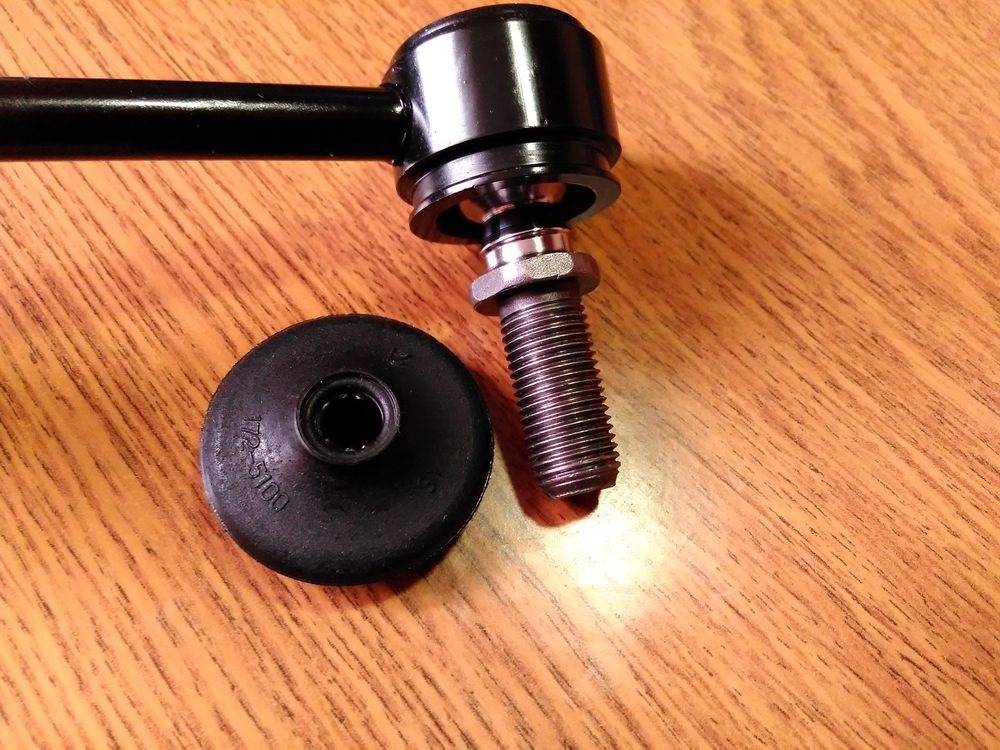 Бюджетные авто оснащаются модификациями со втулками. Это небольшой стальной шток, на концах которого сделаны проушины. В них вставляются втулки. С одной стороны во втулку помещается стержень стабилизатора, а другая часть стойки фиксируется на рычаге подвески.
