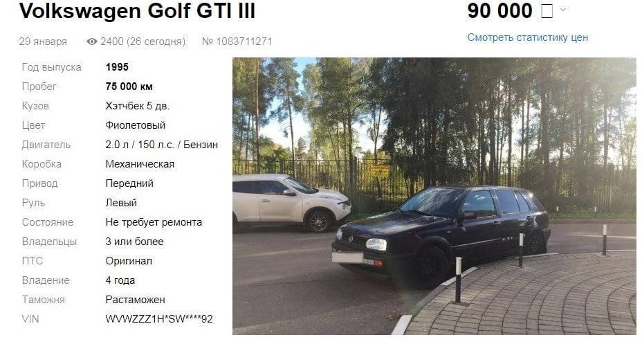 На указанный бюджет можно купить Volkswagen Golf третьего и даже 4-го поколения при большой удаче.
