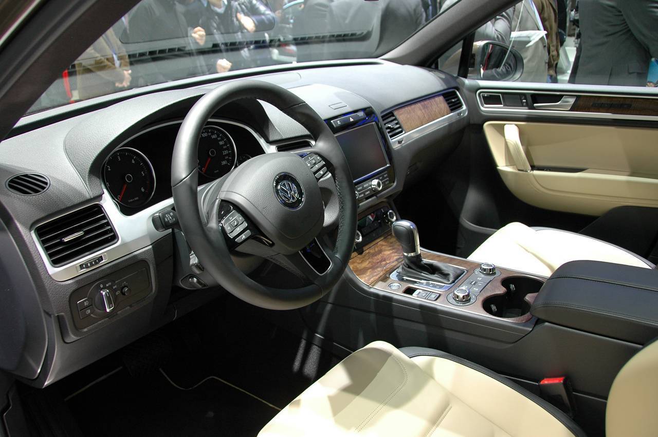 - Руль Туарег 1 — четырехспицевый, неординарной формы, оснащен двумя рядами кнопок и электрорегулировкой.