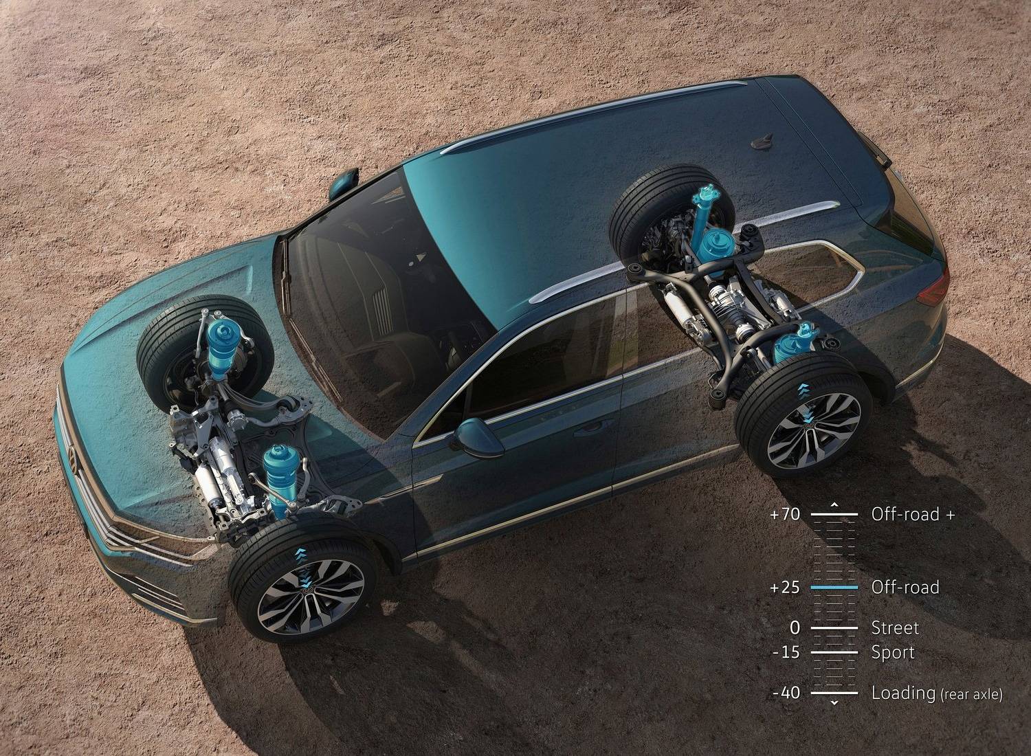 Установлена усовершенствованная пневмоподвеска, которая позволяет поднять кузов сразу на 70 мм на бездорожье, а на хорошей дороге авто проседает на 15-25 см для увеличения аэродинамичности.
