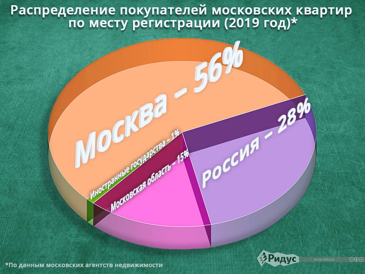 Как все это отразится на рынке недвижимости мегаполисов и в частности Москвы? Чтобы это понять, стоит рассмотреть структуру распределения покупателей московской жилой недвижимости.