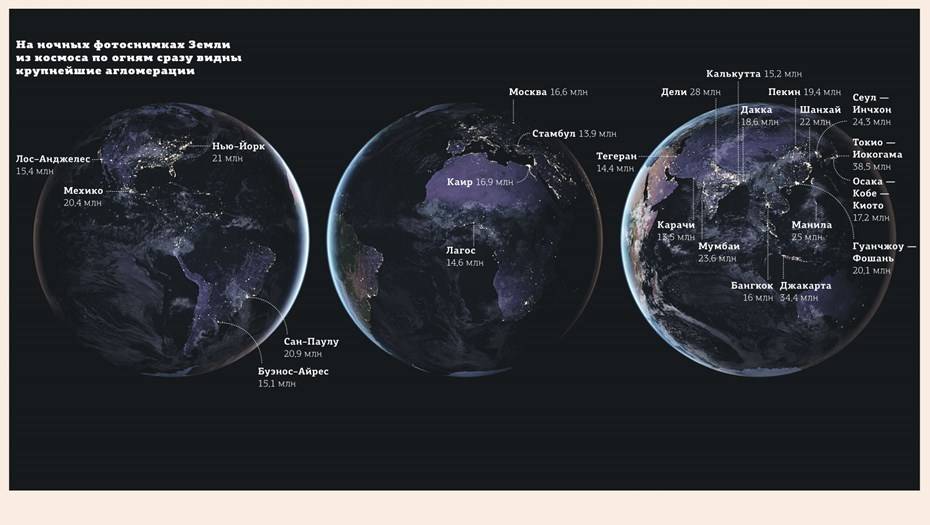 Знали ли вы, что для того, чтобы максимально точно определить границы мегаполисов, ученые используют световой снимок. Именно снимок ночного города с высоты, позволяющей охватить все соседние поселения, позволит определить, где плотность «паутины» построек, инфраструктур и других объектов прерывается. Соответственно это и есть фактическая граница города.