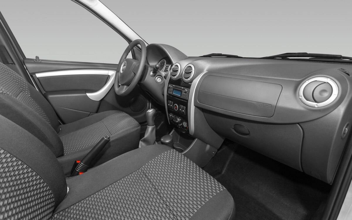 Внутри, как и снаружи, кажется нет ничего лишнего. Салон выполнен из дешевых, но практичных материалов. Центральная консоль простирается от торпедо вниз до тоннеля и коробки переключения передач с наклоном почти 90 градусов. Здесь собраны всевозможные элементы для управления автомобилем. Сразу под круглыми воздуховодами системы отопления находится головное устройство аудиосистемы, под ним клавиши электростеклоподъемеников, обогрева заднего стекла и регуляторы управления отопителем. Багажное отделение достаточно вместительное даже с неразложенными сиденьями. Его высота составляет 911 мм, а минимальная ширина — 995 мм. Не каждый автомобиль сможет похвастаться такими показателями.
