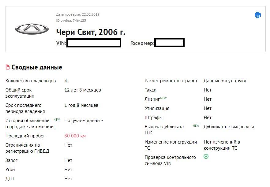 По «Чери КуКу» в базе мы нашли только один полный отчет. Машина оказалась со скрученным пробегом: