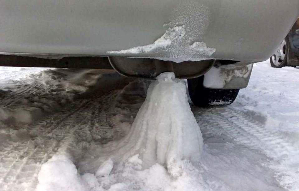 Опасность №1 — конденсат может превратиться в лёд. Это грозит разрывом глушителя или резонатора. Кроме того, при замерзании воды закупориваются важные каналы, соединяющие мотор с другими системами. Поэтому машину очень трудно, почти невозможно завести.