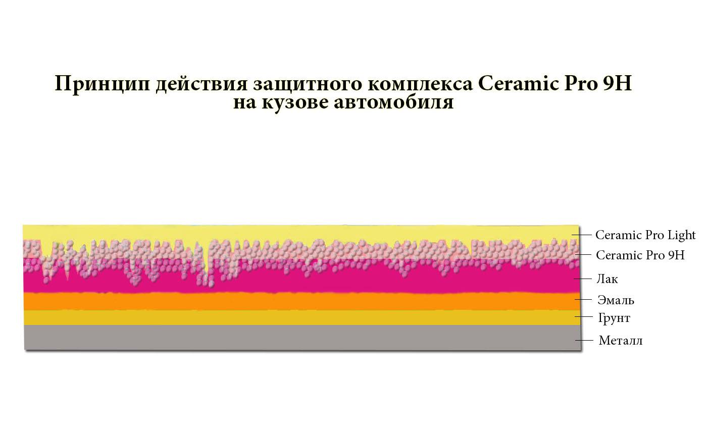 С приходом нанотехнологий в нашу жизнь на автомобильном рынке получила распространение керамическая полировка кузова, основанная на взаимодействии химических составов на молекулярном уровне. Компания Ceramic Pro нашла необычное решение, позволяющее повышать поверхностную твердость лака, сохраняя пластичность всего слоя. Состав Ceramic Pro 9H наносится на поверхность лака, и взаимодействуя на молекулярном уровне, застывает. Поверхность набирает твердость в результате полимеризации.