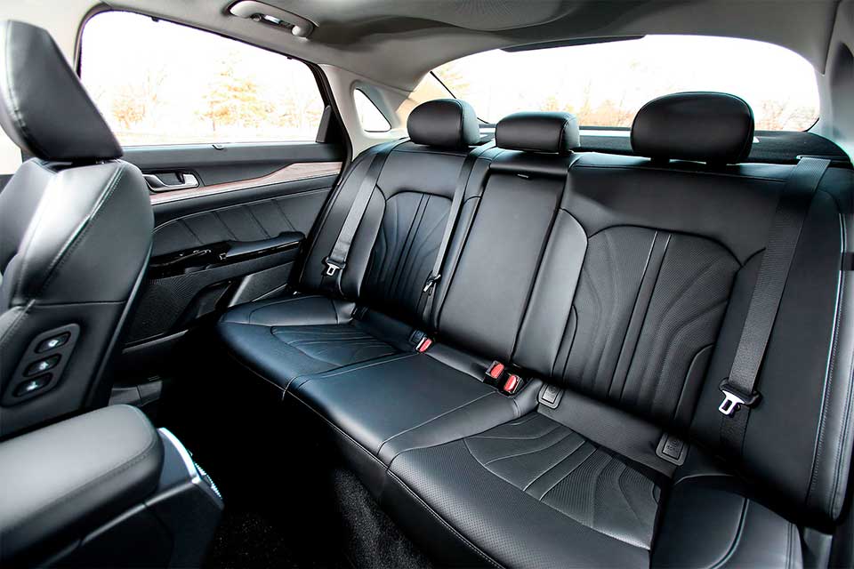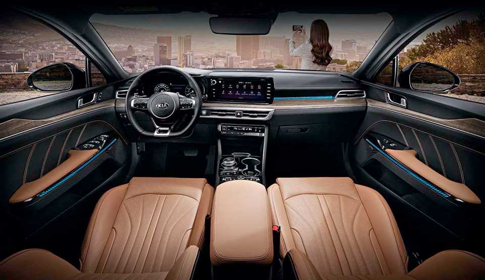 Киа К5 характеризуется просторным и хорошо оформленным салоном, удобным как для передних, так и для задних пассажиров.