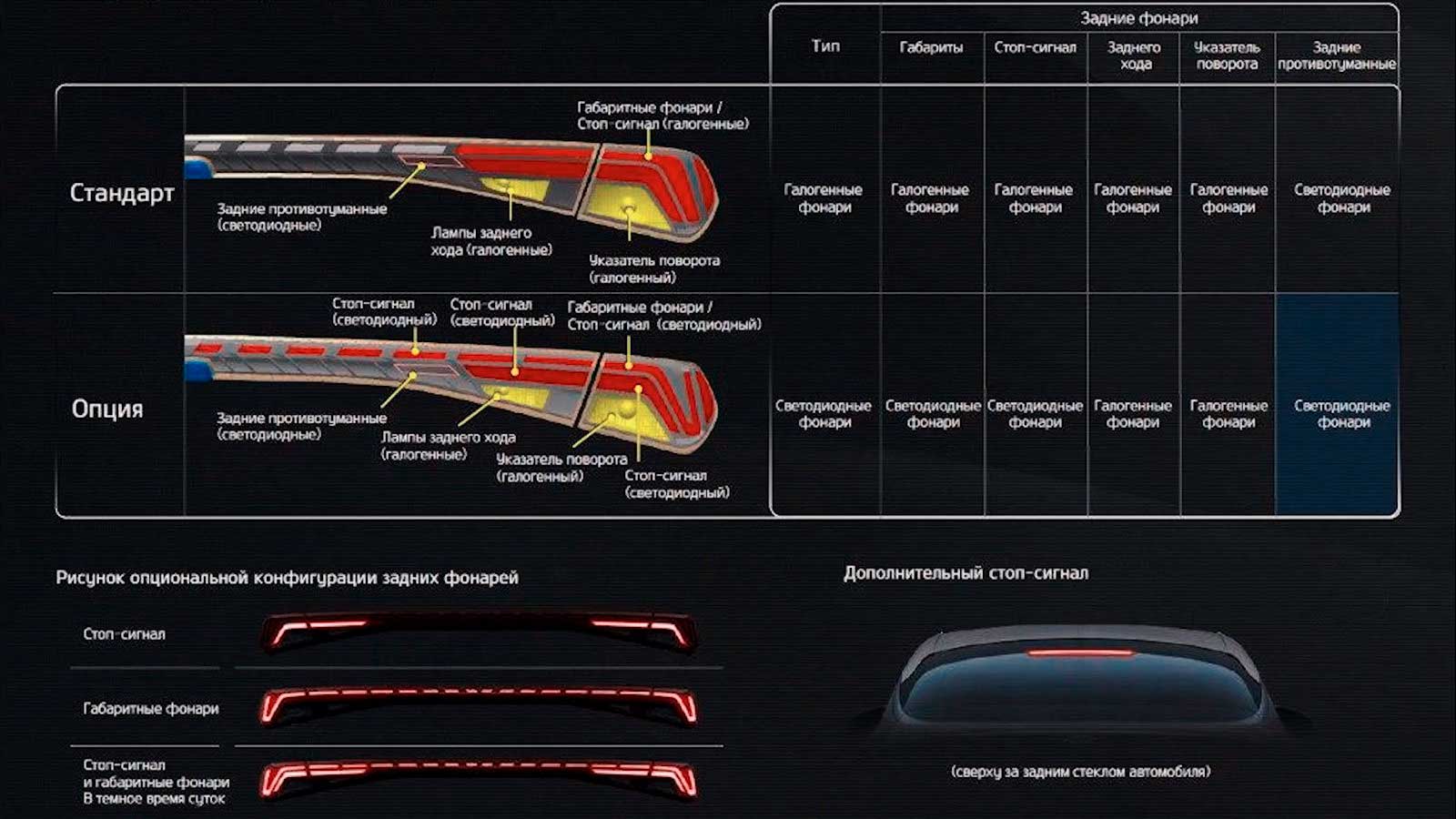 - продольными пунктирными полосами задней светодиодной оптики, тянущимися по всей ширине авто;