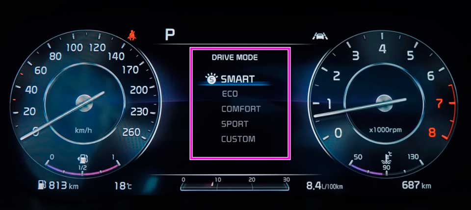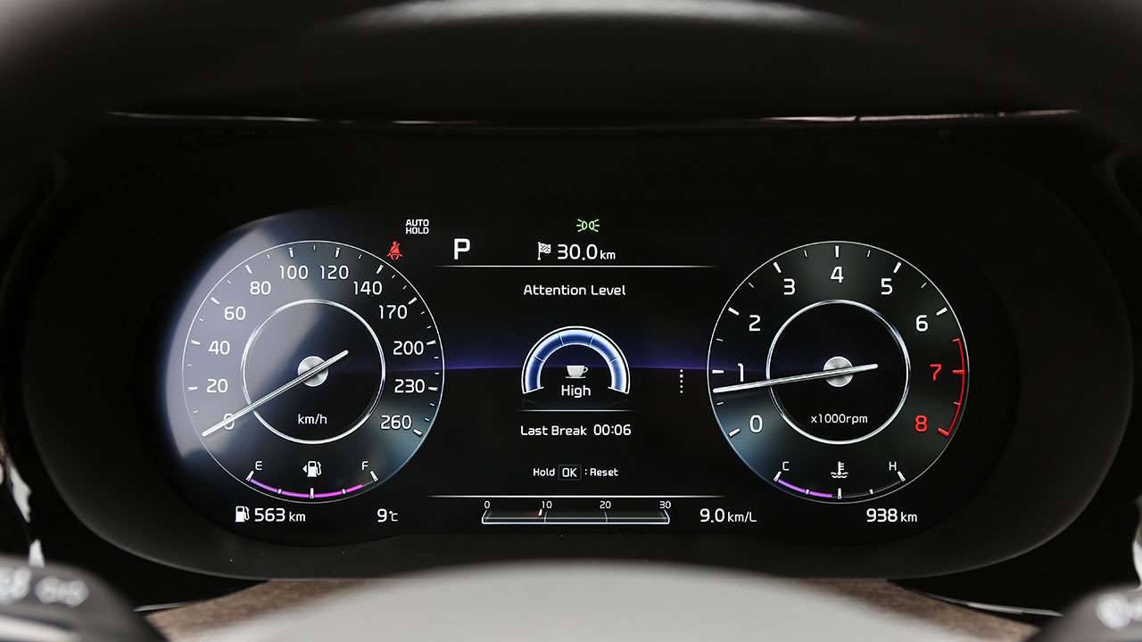 Пилоту корейца достается переработанный 3-спицевый мульти-руль с 8 кнопками и 4 джойстиками. В максимальных комплектациях устанавливается электронная приборная панель Supervision 12,3-дюймовой диагональю. В базовых версиях будет аналоговая приборка с 4,2-дюймовым экраном.
