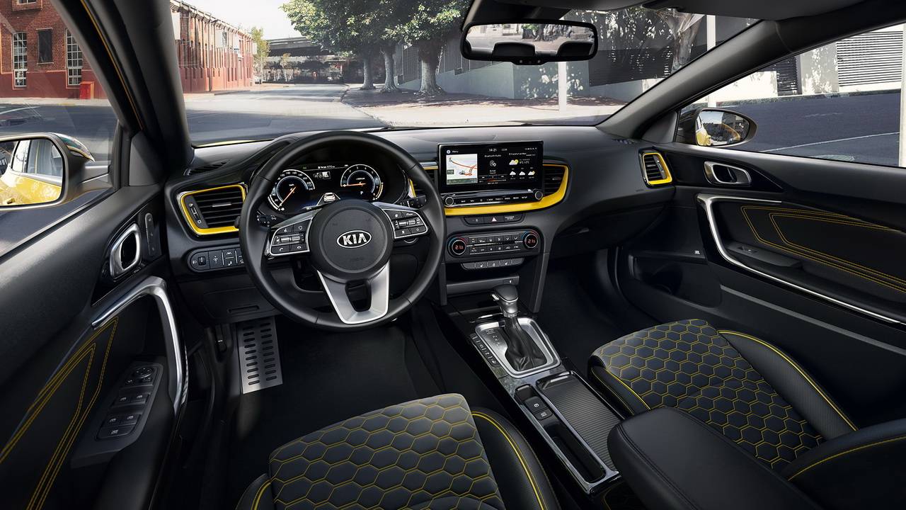 Салон городского кроссовера Kia XСeed имеет знакомую по собратьям компоновку с повернутой к водителю центральной консолью и торчащим над передней панелью мультимедийным дисплеем. В качестве отделочных материалов применяются ткань, а также искусственная и натуральная кожа. Характерной особенностью Икссида являются двухцветные схемы обивки, предусматривающие наличие контрастных элементов декора и швов.