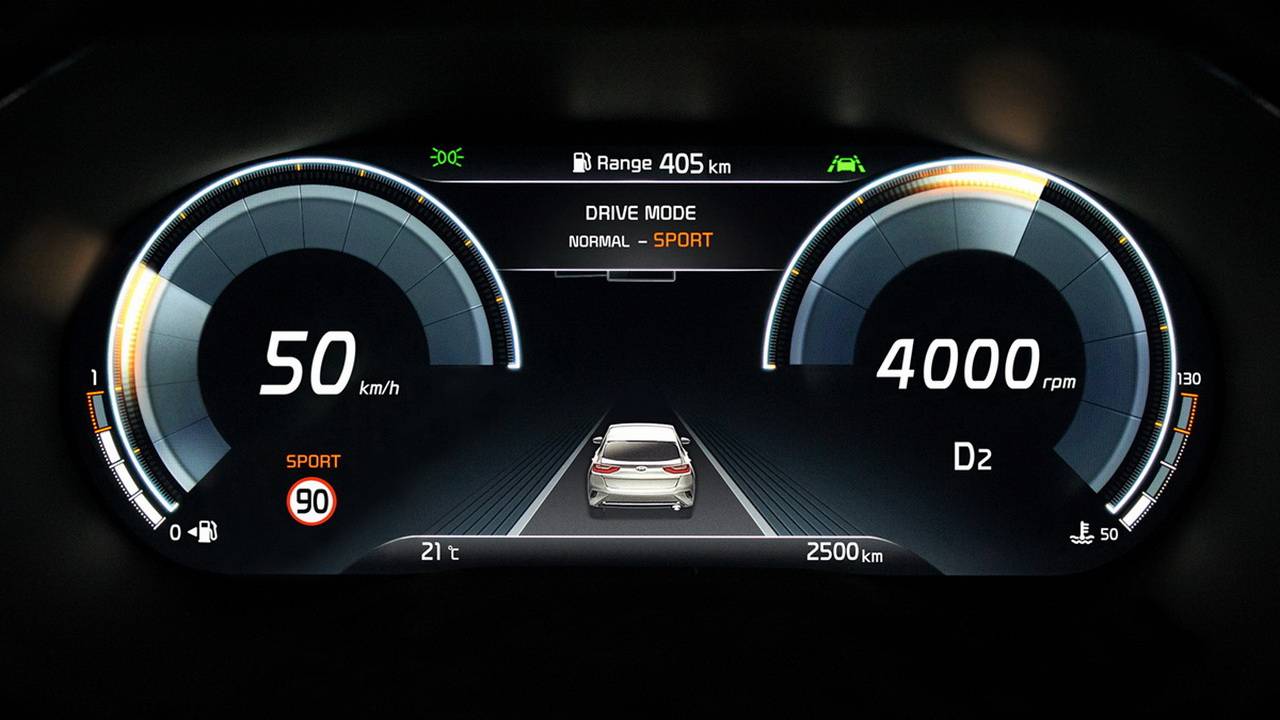Удивила приборная панель XCeed за 3-спицевым мульти-рулем. Это 12,3-дюймовая виртуальная панель, что всегда являлось атрибутом дорогих автомобилей. Анимация конечно простенькая и невозможно вывести навигационную карту, но все равно приятно. В базе установят классические датчики с 3,8-дюймовым экраном в базе и 4,2-дюймовым в средних комплектациях.