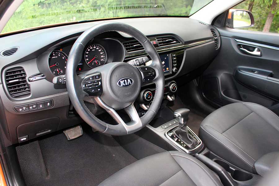 Салон Rio X-Line выполнен в стандартной для Hyundai и Kia манере, особо выдающимися элементами он не отличается. Из его характерных деталей хочется отметить:
